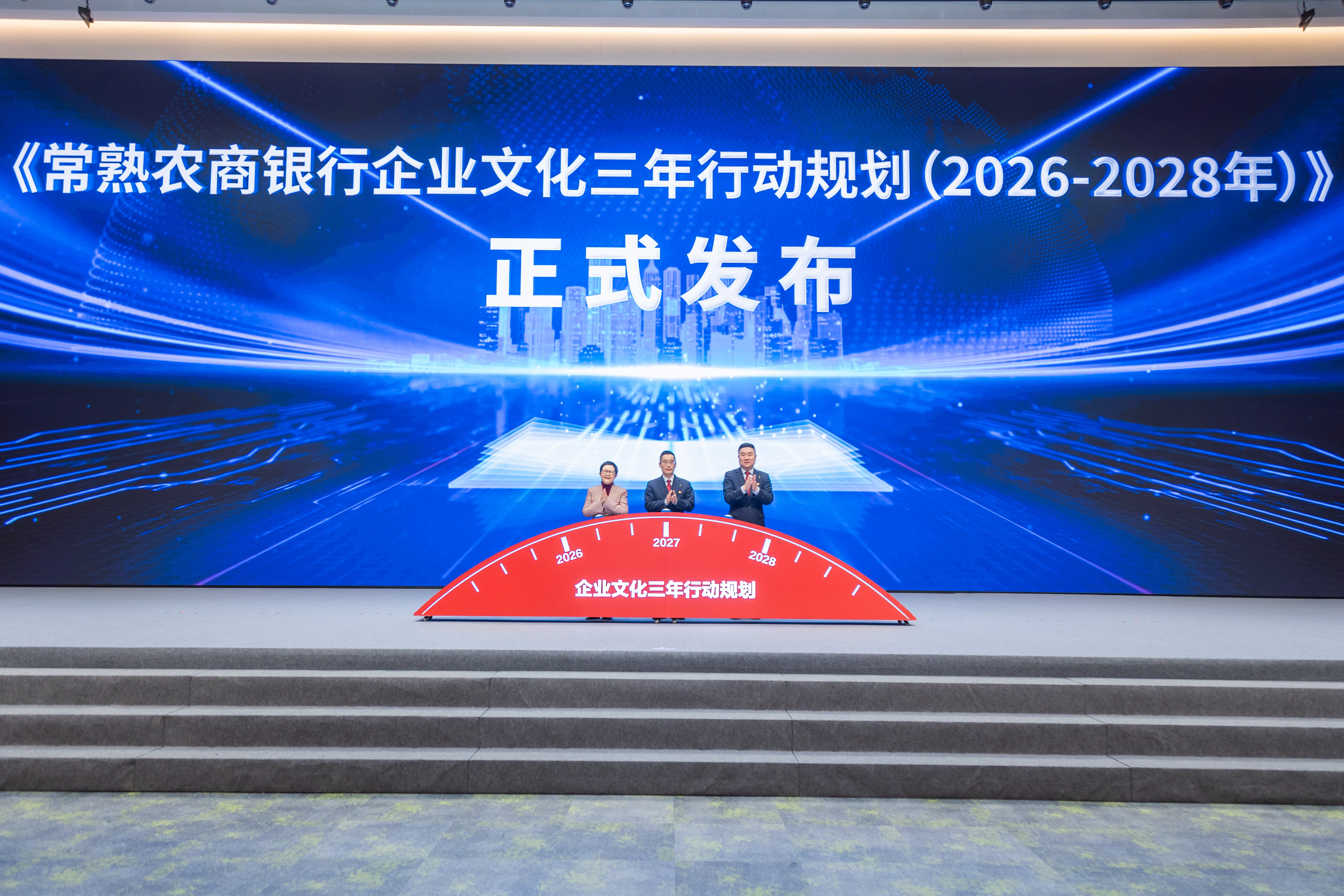 2025年,常熟农商银行焕新发布了“农村金融领跑者”的企业愿景、“小微大义,让美好生生不息”的企业使命,以及价值观等企业文化核心理念体系,受到内外部广泛关注。当下,站在“行庆25周年、上市10周年”的双周年历史交汇点,常熟农商银行进一步深入思考企业文化建设的中长期行动路径,主动顺应新形势,确保企业文化在战略引领与团队凝聚中发挥关键作用。此次发布的《常熟农商银行企业文化三年行动规划(2026-2028年)》,以“知行融合—价值显化—生态引领”的阶梯式路径为下一阶段的企业文化建设指明方向。